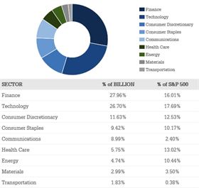 S trochou nadsázky tak lze konstatovat, že s pomocí tohoto indexu můžete investovat jako Warren Buffett, George Soros, Carl Icahn a další přední finanční magnáti této planety. Ve skutečnosti je to samozřejmě složitější. Index iBillionaire je sestavený z 30 největších large cap akcií z indexu S&P 500, které mají v portfoliích 21 finančních miliardářů největší zastoupení. Přesný postup výpočtu a frekvenci realokace indexu se mi bohužel nikde nepodařilo dohledat.