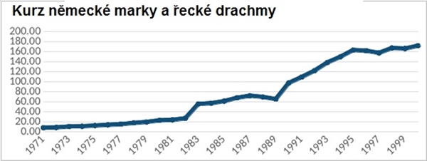 Řecko a Německo: Kurzy v letech 1971 až 2000