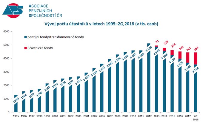 Od roku 2013 se dá sjednat jen doplňkové penzijní spoření. Postupně tedy roste počet účastníků v účastnických fondech, k 30. červnu už jich bylo 883 941. Naopak klesá počet účastníků v transformovaných fondech starého penzijka, k témuž datu jich bylo 3 563 756. Celkově si tedy v polovině roku do penzijních fondů odkládalo peníze na penzi 4 447 697 lidí.