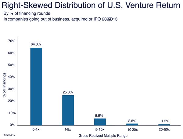 Fondy, které svým investorům zhodnotí celkově investované peníze čtyřnásobně až pětinásobně nebo i víc (nejlepší čtvrtina VC fondů z hlediska výkonu), nemají méně ztrát, ale mají v té poslední úspěšné třetině víc velkých úspěchů.