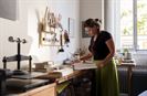 Dnes je její knihvazačská dílna plná světla a vzácné harmonie. Najdete v ní nádherně jednoduché litinové stroje, kterým je kolem sta let, a přesto neztratily nic ze své funkčnosti. Jde o mašiny vyřazené z tiskárenských provozů a zrušených knihařství, které čekaly na šrotiště. „Přitom na nich není, co by se rozbilo, jsou velmi přesné. Jestli mají nějaký neduh, tak je to jejich hmotnost – váží jako půlka zeměkoule. Stěhovat je už opravdu nechci.“